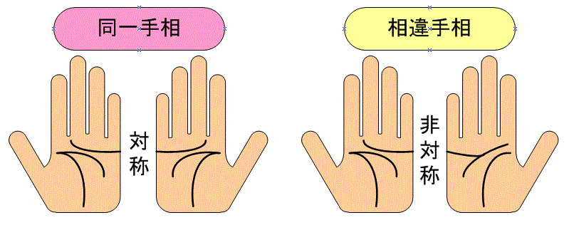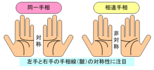 左右対称の「同一手相」、左右非対称の「相違手相」